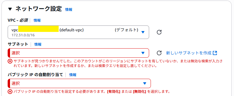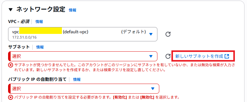 「・・・エラーになります。”サブネットが見つかりませんでした。”って。どうすればいいんだぁぁ」